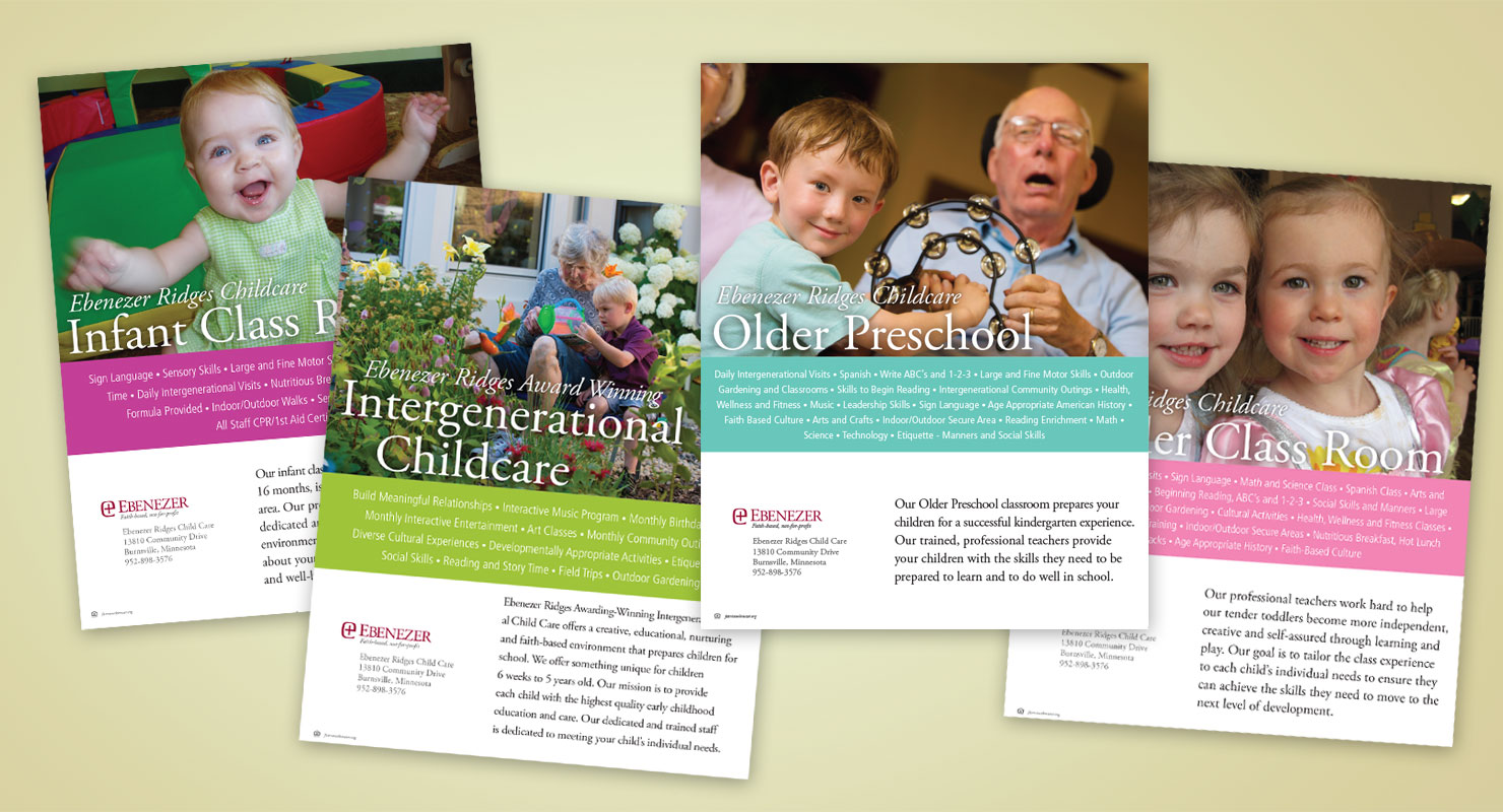 With both Ebenezer owned and 3rd party owned, care communities, creating a unified look and feel for all communications has been a challenge. Recently, I worked with Ebenezer to create a brand guide which outlines proper brand usage, co-branded communications and templated layouts for common collateral pieces.